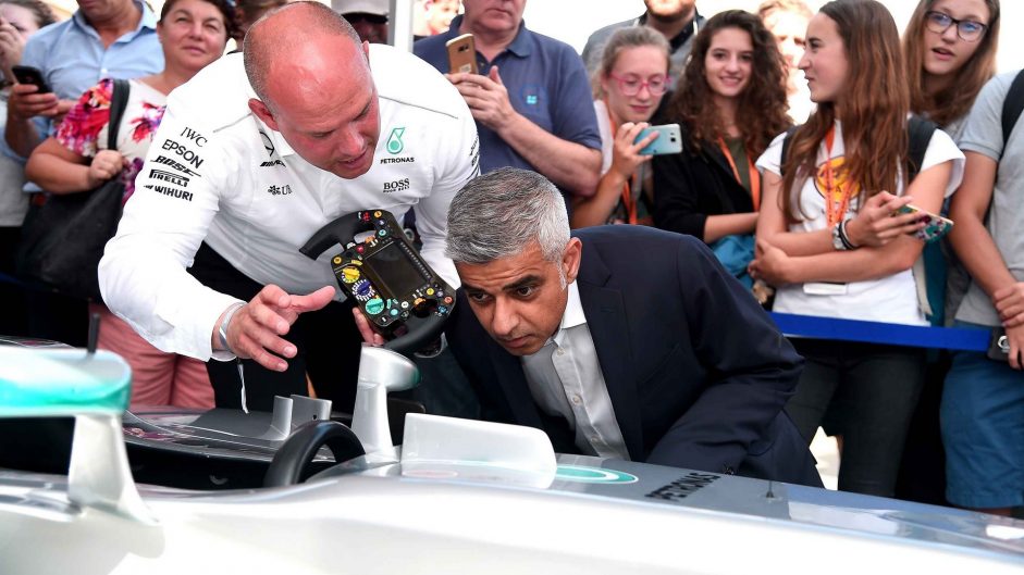 Mayor-of-London-Sadiq-Khan-looks-at-a-Mercedes-AMG-Showcar-at-the-F1-Live-London-event-in-Trafalgar-Square.-941×529